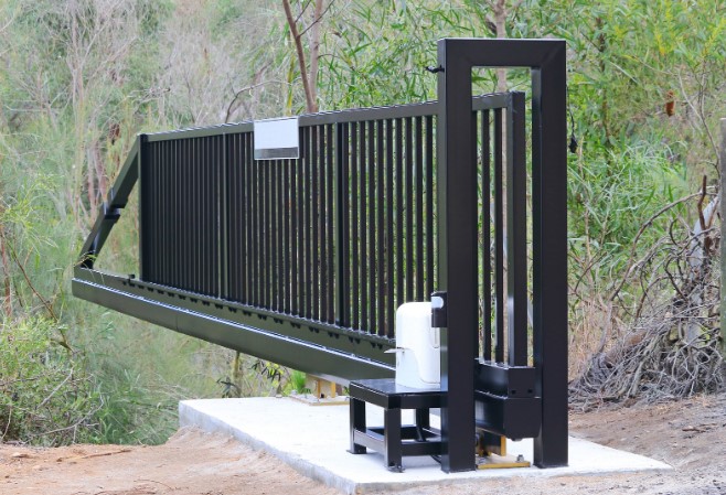 - Откатные конструкции подходят для участков с ограниченным пространством вдоль проезда и устойчивы к ветровым нагрузкам.